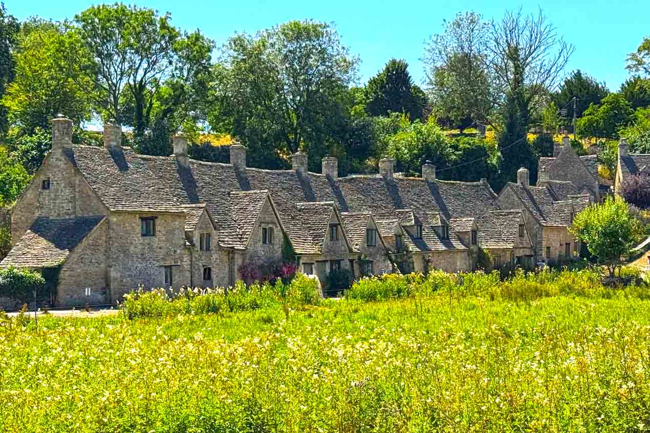 被稱為「英格蘭最美的村莊」,吸引了世界各地的遊客前來欣賞其詩情畫意的景色。阿靈頓排屋是拜伯里的靈魂所在,一排建於14世紀的石造小屋,最初作為羊毛存放倉庫,到了17世紀改建為紡織工人居所。排屋以蜂蜜色石頭和茅草屋頂建造,宛如童話中的場景。
