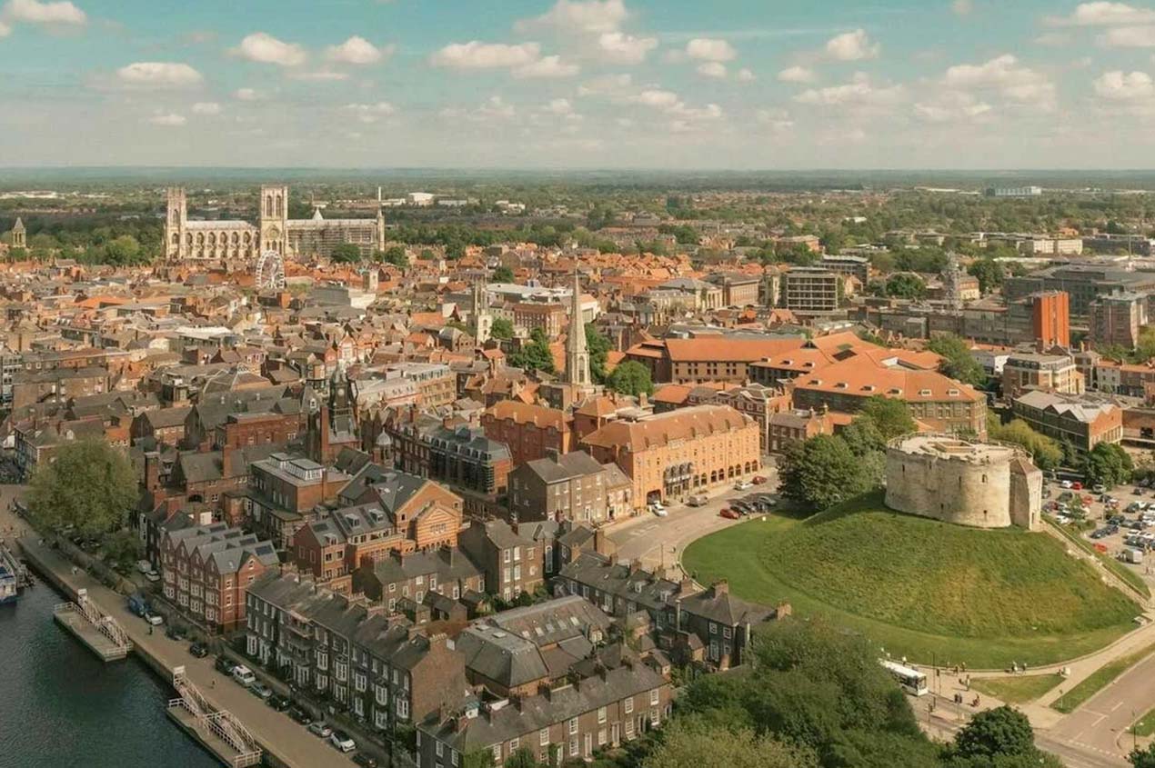 此城初建於西元71年,君士坦丁大帝在西元306年在此登基,至1100到1500年間曾是英格蘭的第二大城,融合羅馬、撒克遜、維京統治的多樣歷史和文物,加上完整保存的中古街道建築,有名的石頭街、肉舖街及約克大教堂,展現出其懷舊古樸的一面,也是見證英格蘭歷史的重要城市。