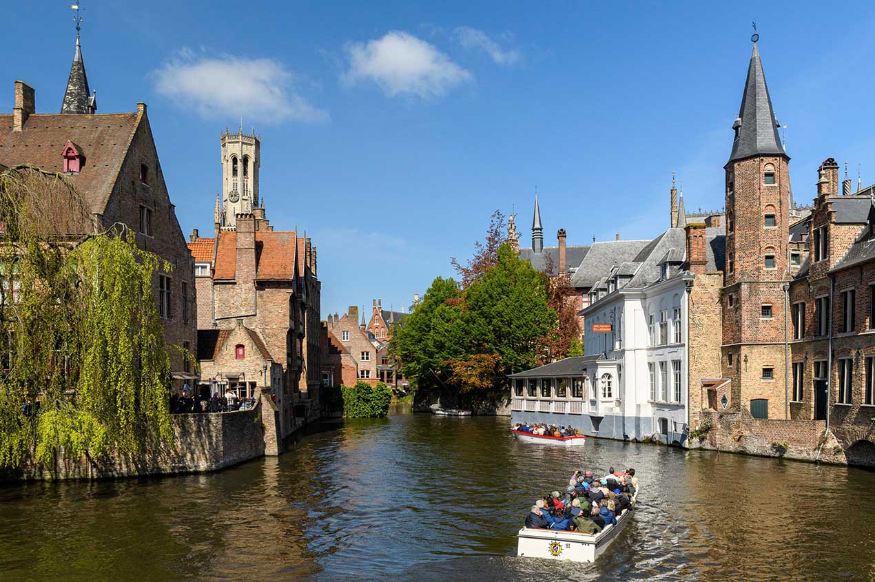 布魯日素有「小威尼斯」之稱,城中運河水道交錯,有五十座橋樑橫跨河上。因為這個城里佈滿大大小小的運河,就連布魯日的名字都有具有橋的意義。搭乘遊船隨著運河渠道,穿越哥德式古建築、石橋、古老庭院與教堂。