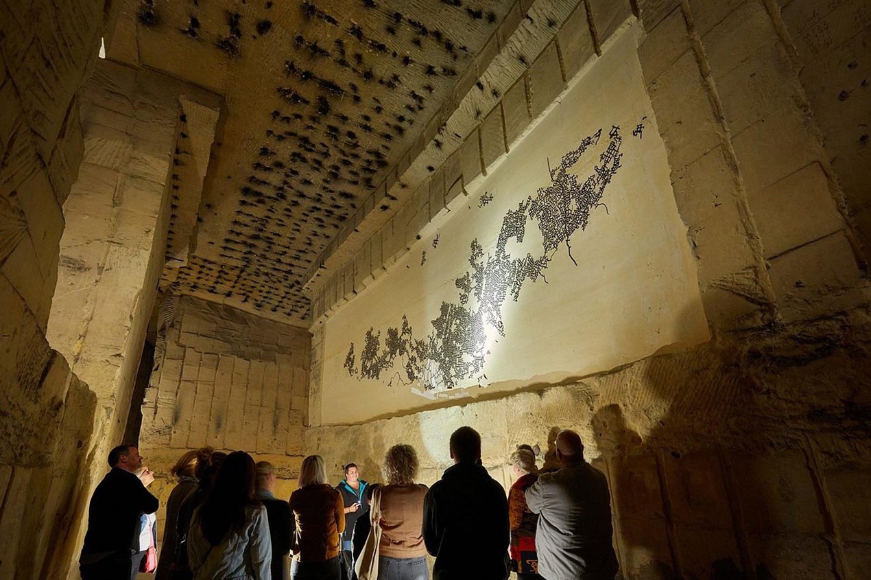 全長約200公里,有數以萬計的地下通道,這裡是居民為取得石塊作建材所挖掘的洞穴,也曾是馬斯垂克附近居民的避難場所,因而有大型廚房、井、醫院及禮拜堂…等,裡面還有當時挖掘工人的彩繪壁畫。洞穴溫度約攝氏9~10度,並無太多燈光,要注意保暖及步伐。