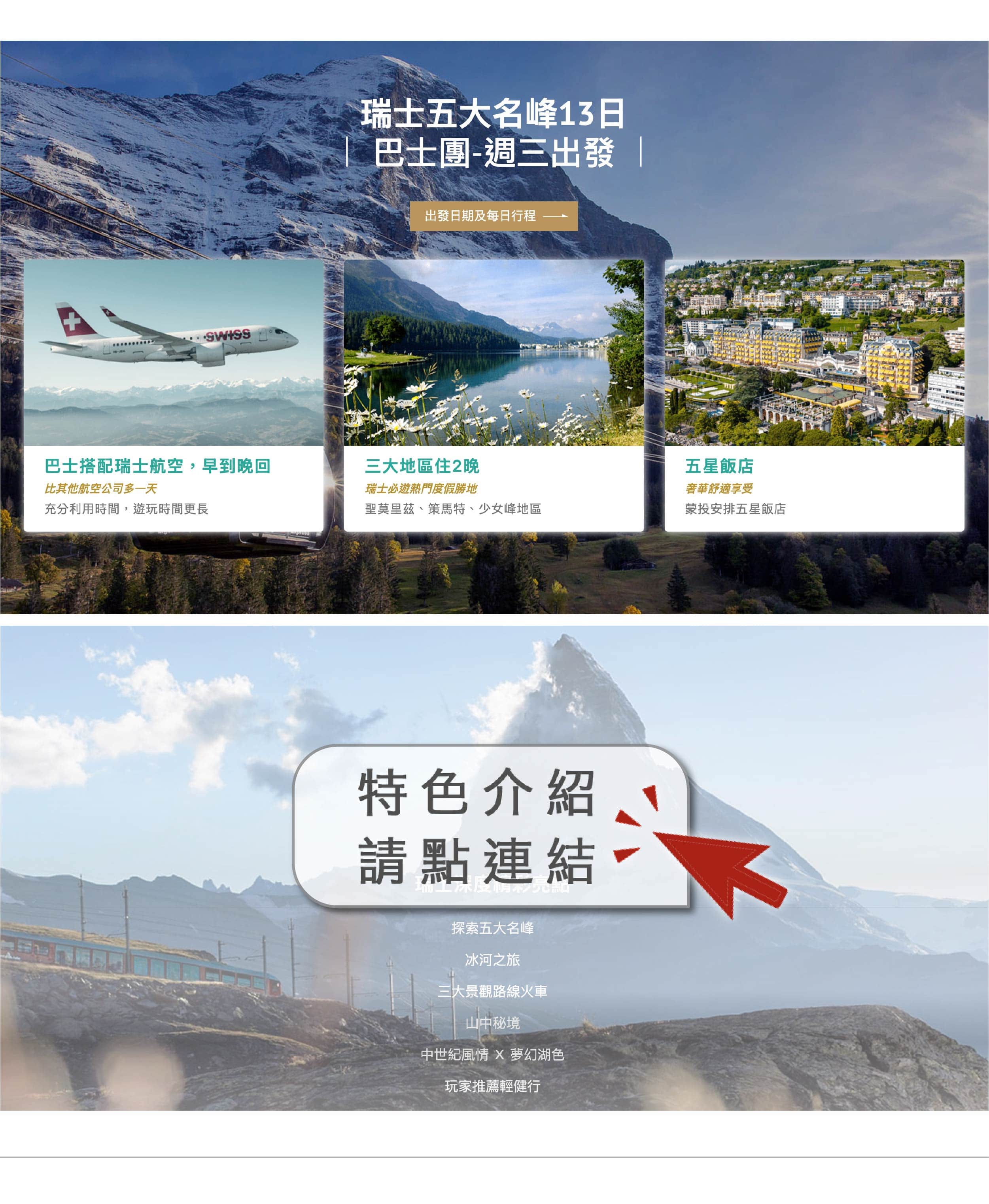*如遇格林德瓦或茵特拉根飯店客滿,會改住少女峰地區飯店。