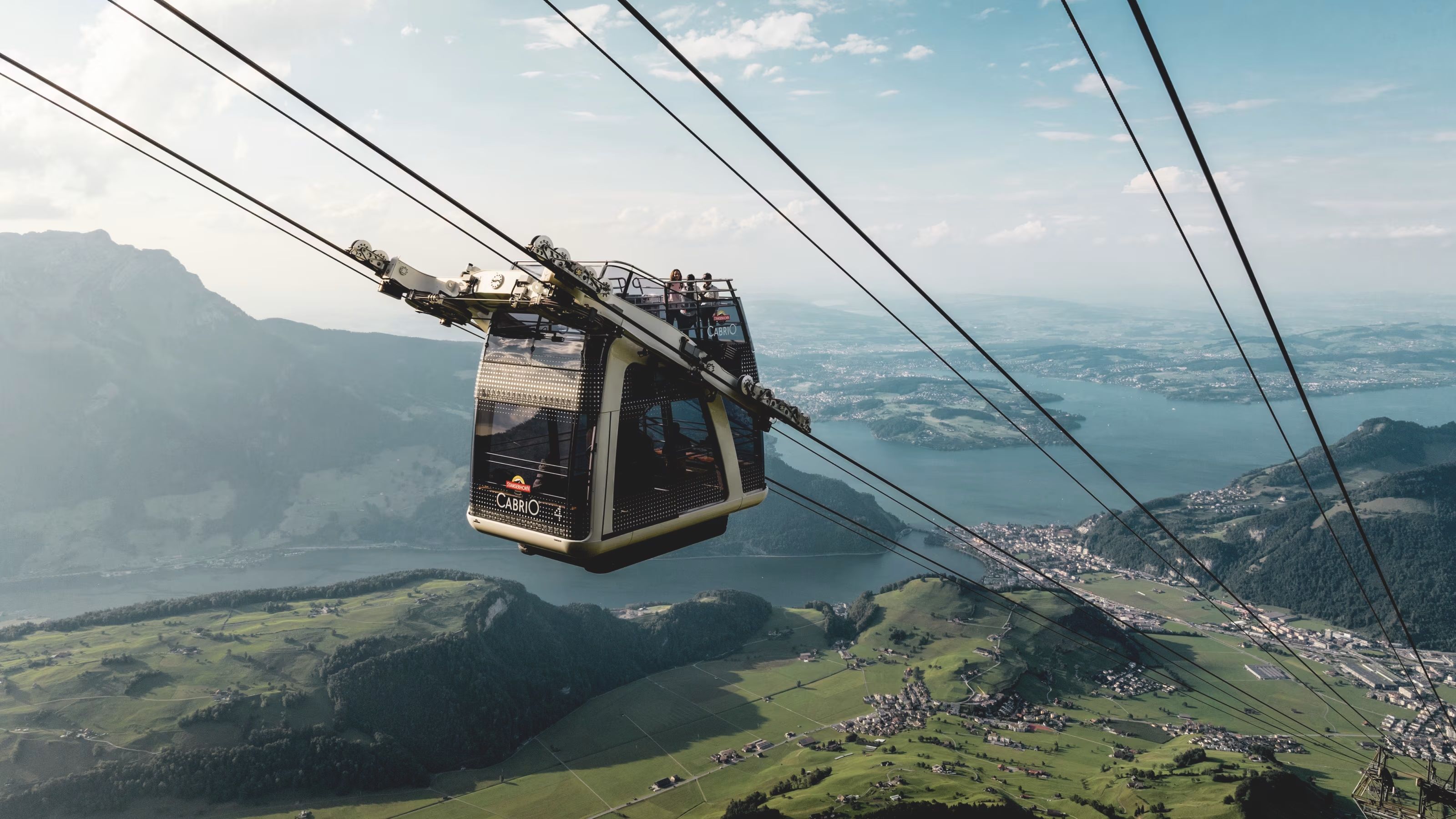 搭乘一段Funicular拉繩式古董火車,然後改搭全球獨一無二的雙層敞篷纜車,站在敞篷纜車的車頂盡情享受全景的視野,登上海拔1850公尺的山頂,在天氣好的時候琉森湖的美景一覽無遺,山頂上有個土撥鼠家庭,有機會近距離看到土撥鼠在你眼前奔跑打鬧的模樣。