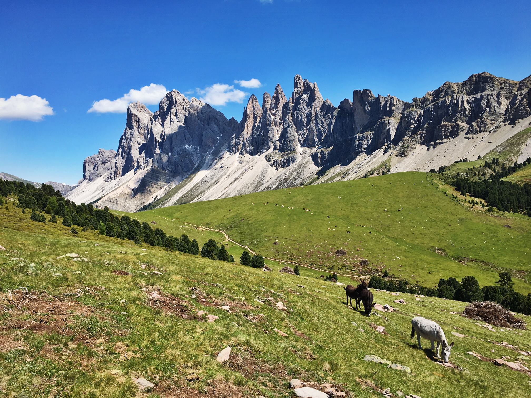從奧爾蒂塞伊(Ortisei)搭乘 Resciesa 登山纜車,輕鬆登上海拔約 2,200 公尺的 Alpe Resciesa 高原,在廣闊草原與山岳景觀中展開健行,遠眺壯麗的 Odle 山群,為多洛米堤的經典路線之一。