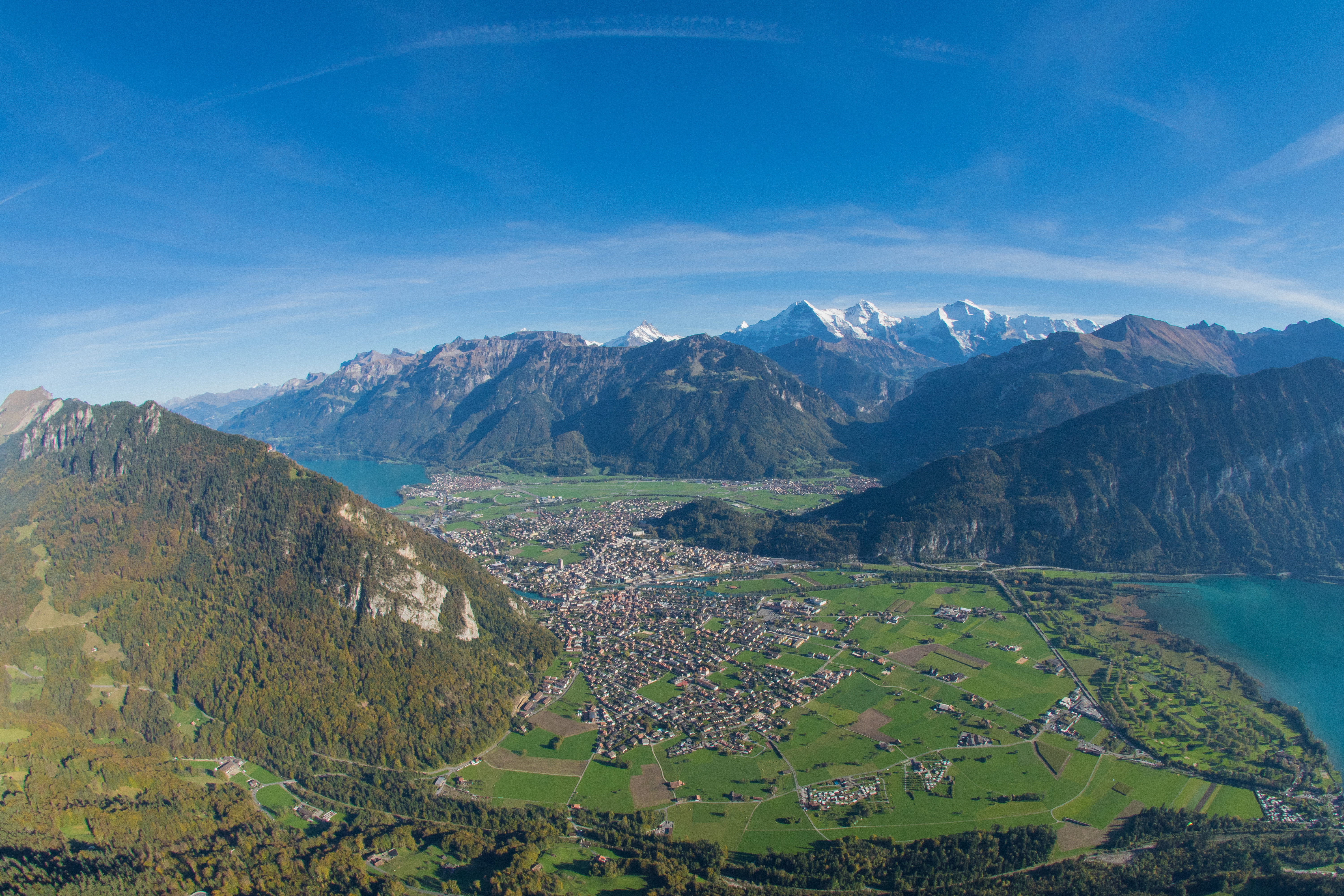 茵特拉根(Interlaken)是瑞士伯恩高地的迷人小鎮,位於圖恩湖和布里恩茨湖之間,四周被壯麗的阿爾卑斯山脈環繞。這一獨特的地理位置賦予了茵特拉根如畫的自然景觀,並使其成為通往瑞士其他名勝(如少女峰、格林德瓦、茵特拉根東部的哈爾高)和阿爾卑斯山脈的交通樞紐。茵特拉根擁有完善的交通連接,包括火車、巴士和登山鐵路,讓遊客能輕鬆探索周邊的壯麗景點。