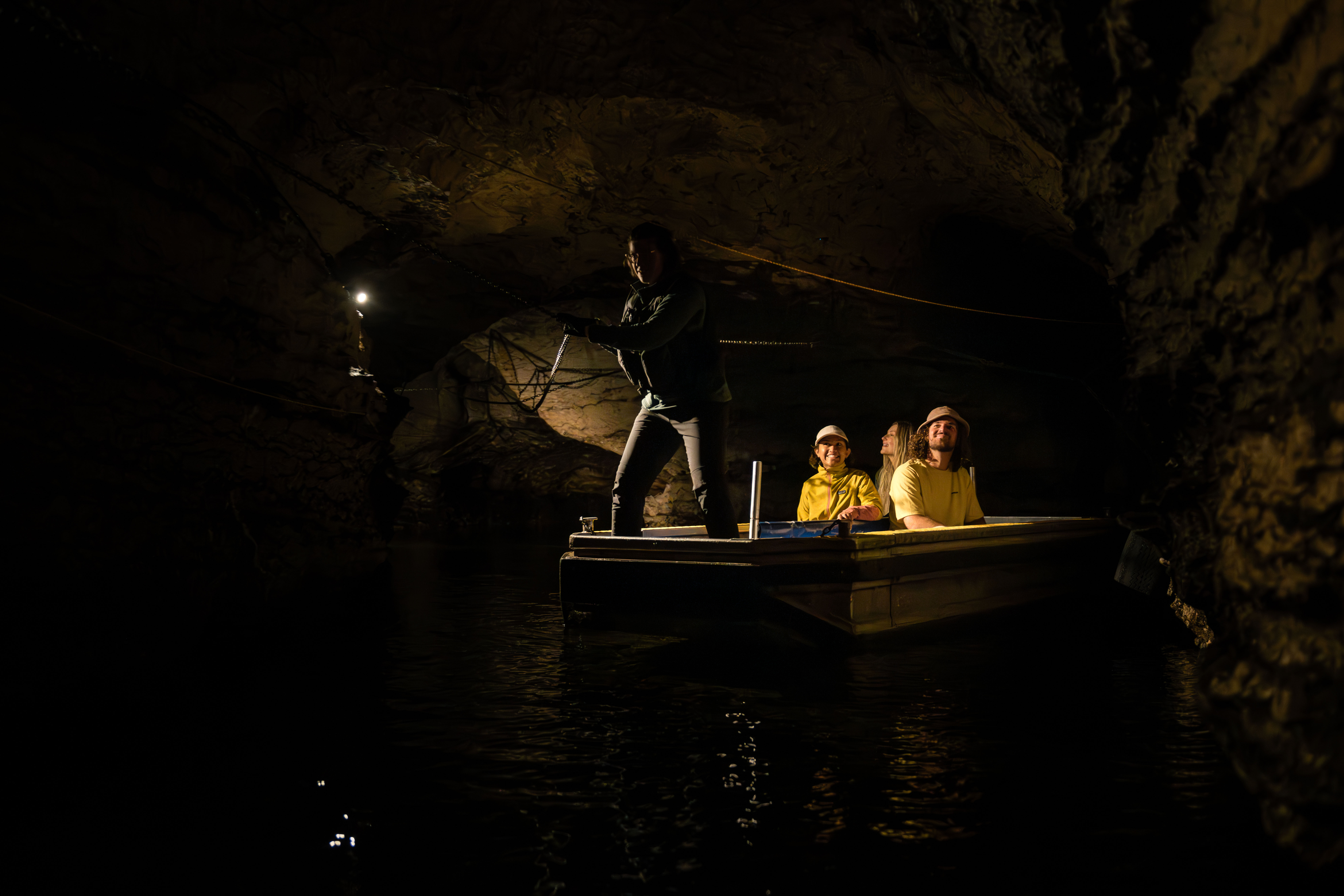 從蒂阿瑙湖畔搭乘短程遊船出發,抵達洞口後,由專業導覽帶領,穿過狹小的石灰岩隧道,沿著地下河道步行至洞穴深處,再搭乘小艇進入完全無光的靜謐空間,仰望成千上萬的藍綠光點緩緩漂浮於頭頂,如同航向一片地下星空。