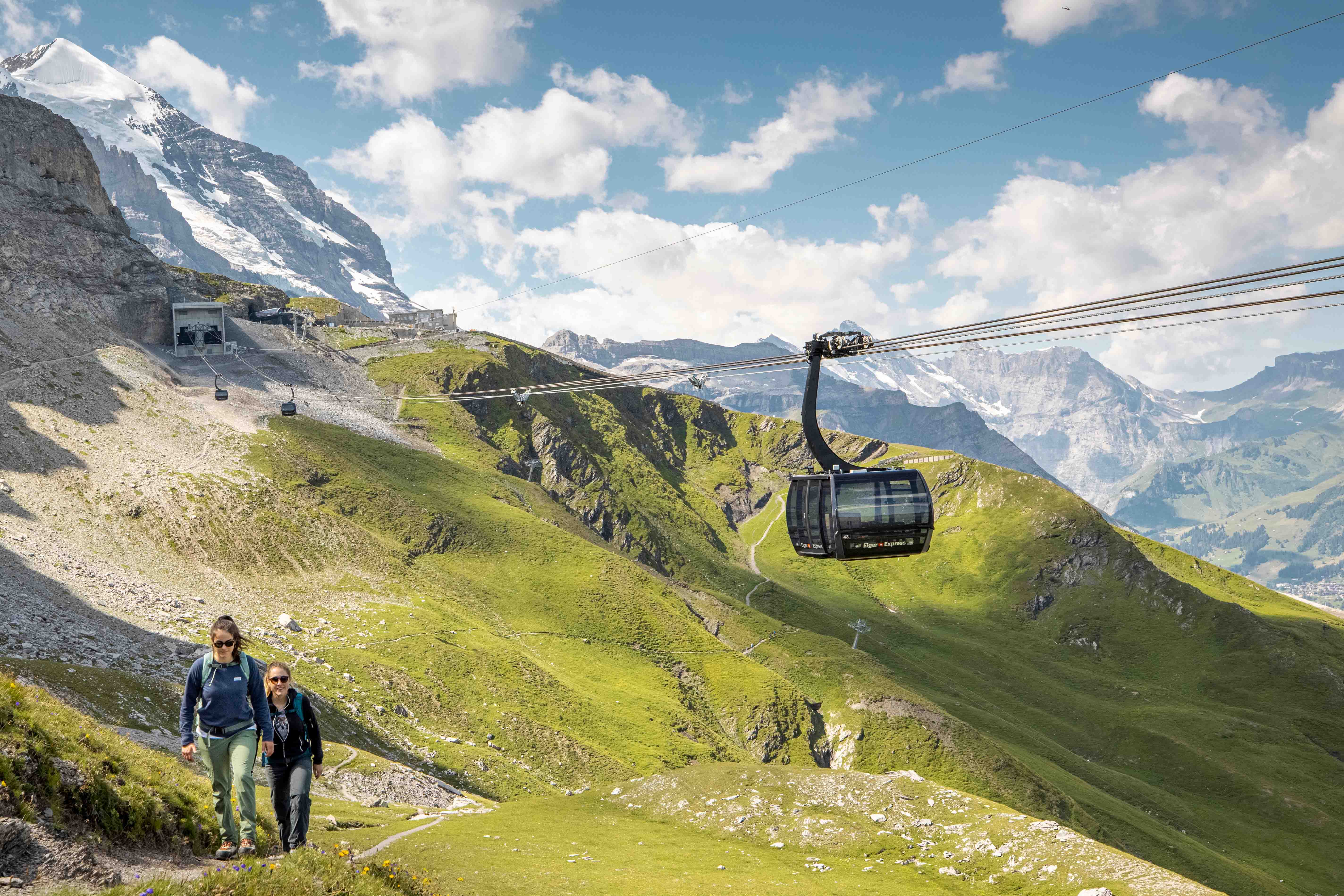 少女峰鐵路公司全新打造的纜車系統「艾格快線(Eiger Express)」於 2020 年正式啟用,耗資4.7億,是少女峰地區最先進的纜車系統,大幅縮短前往少女峰觀景台(Jungfraujoch)的行程時間。纜車自海拔937公尺格林德瓦轉運站(Grindelwald Terminal)直達海拔高2,328公尺的艾格冰川站(Eigergletscher),全程僅約 15 分鐘,沿途可近距離欣賞艾格峰北壁與阿爾卑斯高山景觀。
